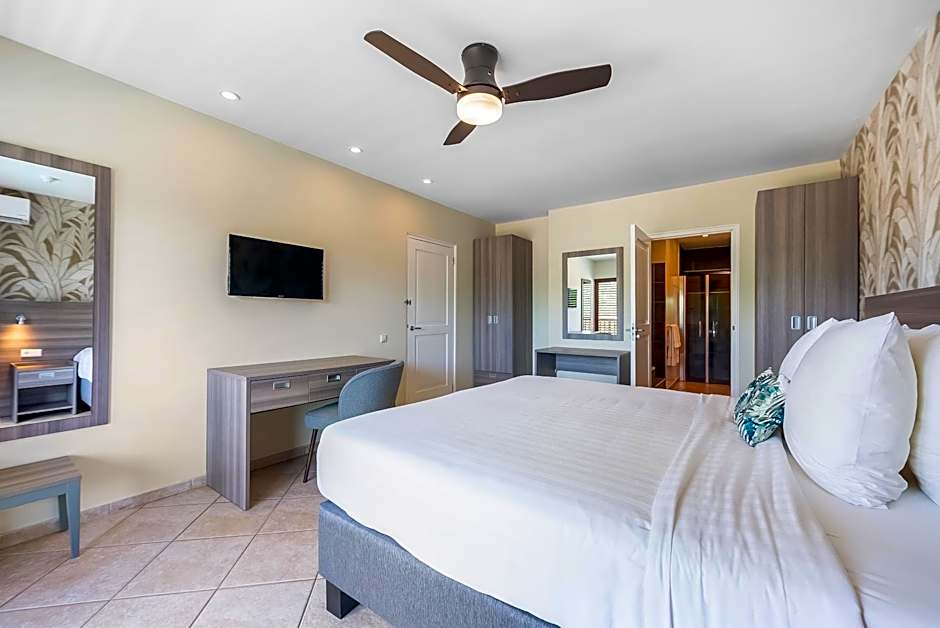 The spacious 2-bedroom Suites offers a master bedroom with a 1 king-size bed and a private bathroom with shower. The second bedroom features a queen-size bed and another bathroom. The suite also features a fully equipped kitchen and a seating area and balcony overlooking the beach and ocean.