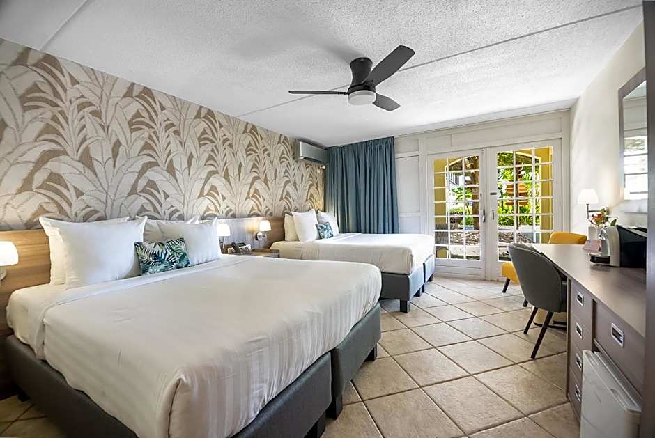 The spacious 1-bedroom Suites offer a master bedroom with either 2 queen beds or 1 king-size bed and a private bathroom with bath and shower. The seating area features a Murphy bed, while the suite also features a fully equipped kitchen and a balcony or terrace overlooking the beach and ocean.
